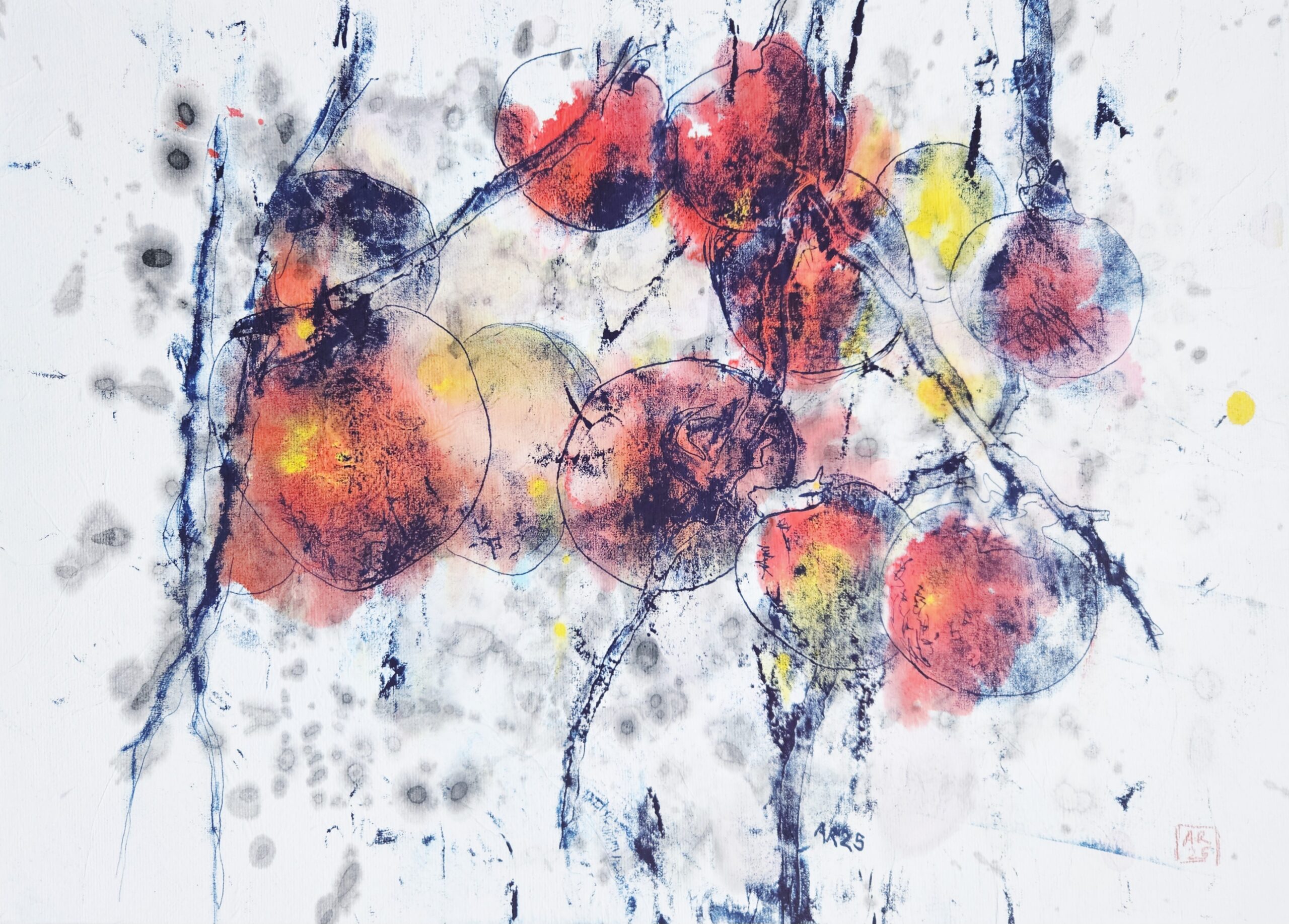 Cette série de dessins s’inscrit plus largement dans mes recherches autour du papier : papiers japonais, Washi, encres et aquarelles sur papier chinois. J’ai récemment installé mon atelier en Vendée, où je me consacre pleinement à la création. Dans ce lieu en pleine nature, je vais poursuivre mes recherches de pigments végétaux sur mon propre papier artisanal.